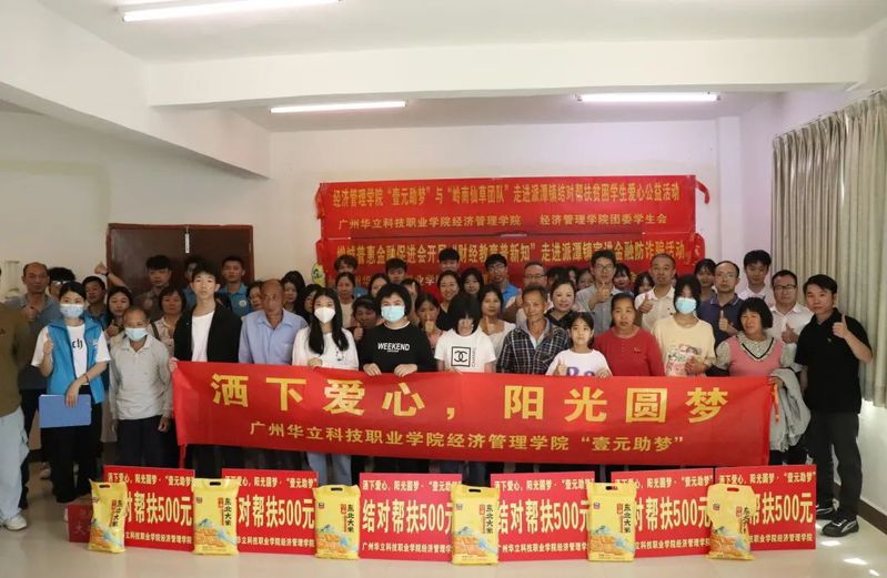 2023年4月16日,燦爛的陽光穿過樹枝間的空隙,透過早霧,一縷縷地灑滿了整個校園。經(jīng)濟管理學院師生代表一行在黨總支書記朱少先和院長程玉賢的帶領下,前往增城區(qū)派潭鎮(zhèn)社工服務站開展“壹元助夢”幫扶活動。本次活動主題為——灑下愛心,陽光圓夢。