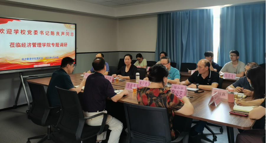 為深入推動(dòng)學(xué)校主題教育走深走實(shí),5月26日,學(xué)校黨委書記陳良聲同志率黨辦副主任邱志宏同志和宣傳部副部長(zhǎng)陶必芝同志到經(jīng)管學(xué)院就加強(qiáng)黨建“雙創(chuàng)”工作,努力推進(jìn)學(xué)院高質(zhì)量發(fā)展進(jìn)行專題調(diào)研。經(jīng)管學(xué)院院長(zhǎng)程玉賢教授、黨總支書記朱少先同志及各專業(yè)教研室主任與教師代表等參加了本次調(diào)研會(huì)。