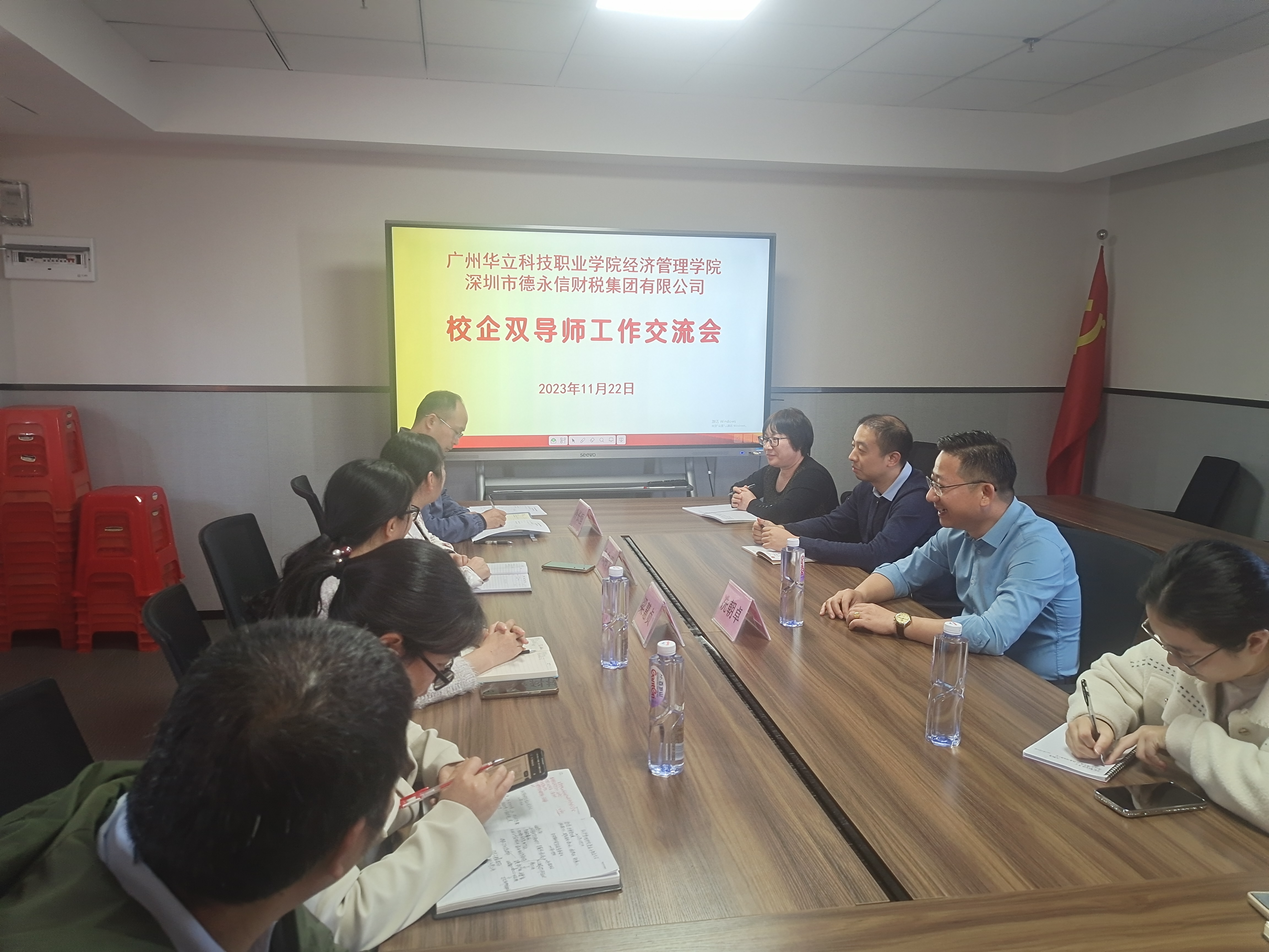 為拓展校企合作、產(chǎn)教融合新領(lǐng)域,與時(shí)俱進(jìn)了解行業(yè)發(fā)展新趨勢(shì),促進(jìn)專(zhuān)業(yè)建設(shè)更上一層樓,11月22日下午,我院大數(shù)據(jù)與會(huì)計(jì)專(zhuān)業(yè)群骨干成員與深圳市德永信財(cái)稅集團(tuán)有限公司代表,在學(xué)院西1-613會(huì)議室,舉行了產(chǎn)教融合推進(jìn)會(huì)及校企雙導(dǎo)師工作交流會(huì),會(huì)議由學(xué)院副院長(zhǎng)朱向平主持。