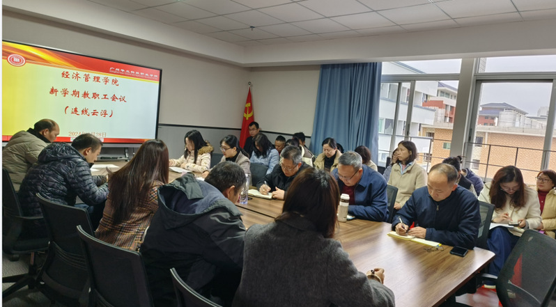 為布新局、謀新篇,切實(shí)做好新學(xué)期各項(xiàng)工作,貫徹落實(shí)省政府、省教育廳、學(xué)校高質(zhì)量發(fā)展精神,2月28日上午,經(jīng)管學(xué)院在西一教學(xué)樓614A會(huì)議室(連線云浮校區(qū)經(jīng)管系),召開2023-2024學(xué)年第二學(xué)期新學(xué)期全體教職工大會(huì)。學(xué)校高度重視經(jīng)管學(xué)院發(fā)展,陳顯強(qiáng)副校長到會(huì)指導(dǎo)工作。
