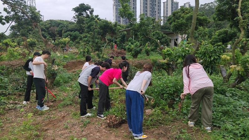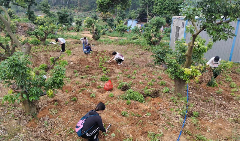 圖3 師生代表在為荔枝樹林除草