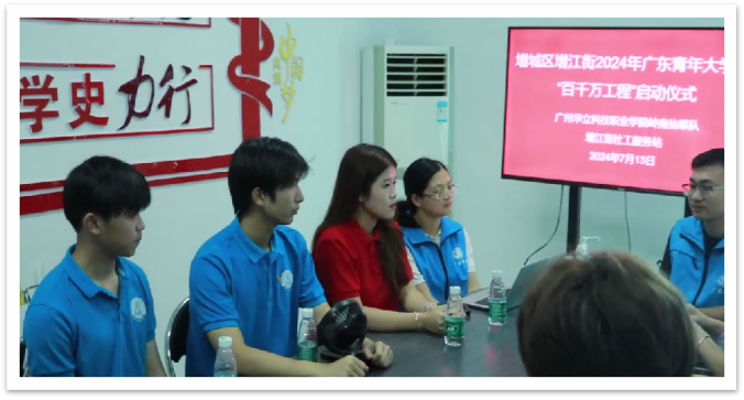 7 月 12 日上午,“嶺南仙草”突擊隊(duì)隊(duì)員們與各青年大學(xué)生代表在增城二中共同參與增江街組織的廣東青年大學(xué)生“百千萬(wàn)工程”三下鄉(xiāng)啟動(dòng)儀式,見(jiàn)證了這一具有重要意義的時(shí)刻。