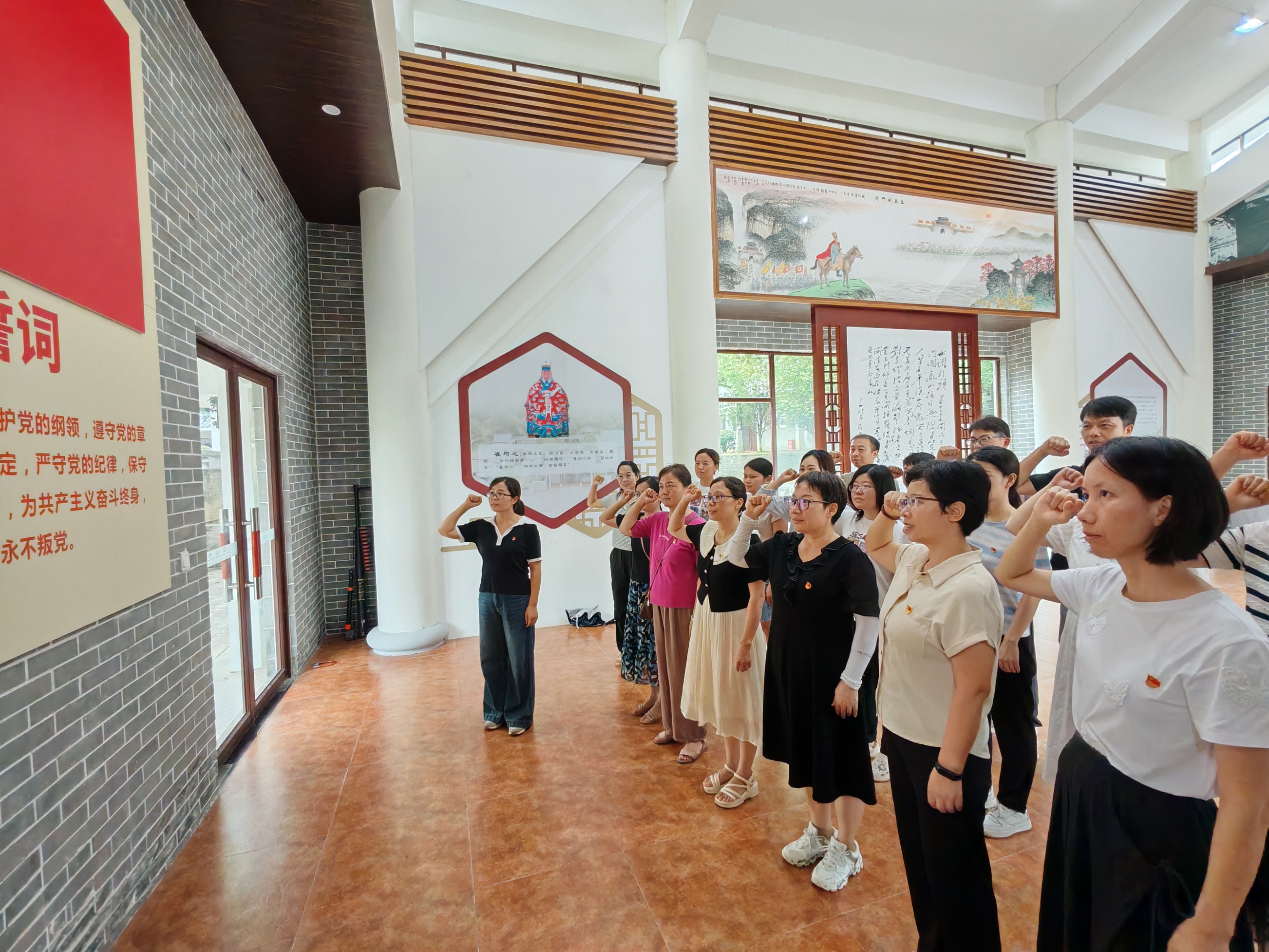 在浩氣凜然又凝重肅穆的庭院中,經(jīng)濟管理學(xué)院黨總支安排了一場重溫入黨誓詞儀式。在鮮艷的黨旗下,全體黨員面向黨旗,右手握拳,鄭重宣誓:“我志愿加入中國共產(chǎn)黨……隨時準備為黨和人民犧牲一切,永不叛黨?!辩H鏘有力的誓言在清獻園上空回蕩,每一位黨員的眼神都充滿了堅定與信念,仿佛在這一刻,他們與歷史長河那些清正為民、無私奉獻的先輩們心靈相通,共同守護著這份對民族和國家的忠誠與承諾。