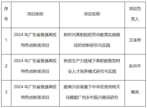 近日,廣東省教育廳發(fā)布了2024年度普通高校重點科研平臺和項目、廣東省教育科學(xué)規(guī)劃項目以及廣東省普通高校認(rèn)定類科研項目的立項名單,我院共計獲得3項科研項目立項。