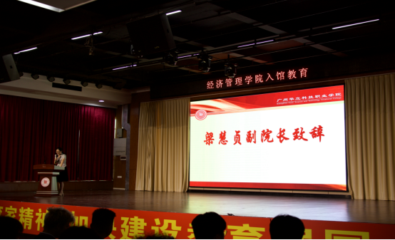 謝曉慧主任首先代表學(xué)院對新同學(xué)的到來表示熱烈的歡迎,她講到希望新生們認真聽講,通過入學(xué)教育盡快適應(yīng)大學(xué)生活。隨后,梁慧貞副院長致辭,她向新生們介紹學(xué)校概況、發(fā)展歷史、辦學(xué)特色及未來規(guī)劃,增強新生的歸屬感和認同感。并寄語全體新生:“珍惜大學(xué)時光,勇于探索未知、追求卓越。成為有理想、有本領(lǐng)、有擔(dān)當(dāng)?shù)臅r代新人?!?/span>