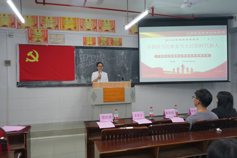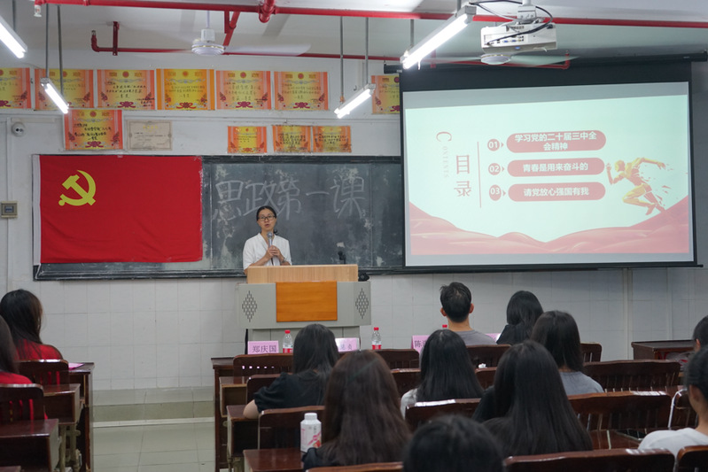 為深入貫徹落實黨的二十屆三中全會精神,引領(lǐng)廣大新生堅定理想信念、強(qiáng)化使命擔(dān)當(dāng),扣好大學(xué)的“第一??圩印?。2024年10月9日晚上,梁慧貞副院長為2024級新生講授了主題為“爭做擔(dān)當(dāng)民族復(fù)興大任的時代新人”的“思政第一課”。參加本次課程的人員有黨建小組指導(dǎo)老師陳湛通同志,輔導(dǎo)員老師鄧念平同志、鄭慶國同志,黨建小組成員以及2024級新生代表。