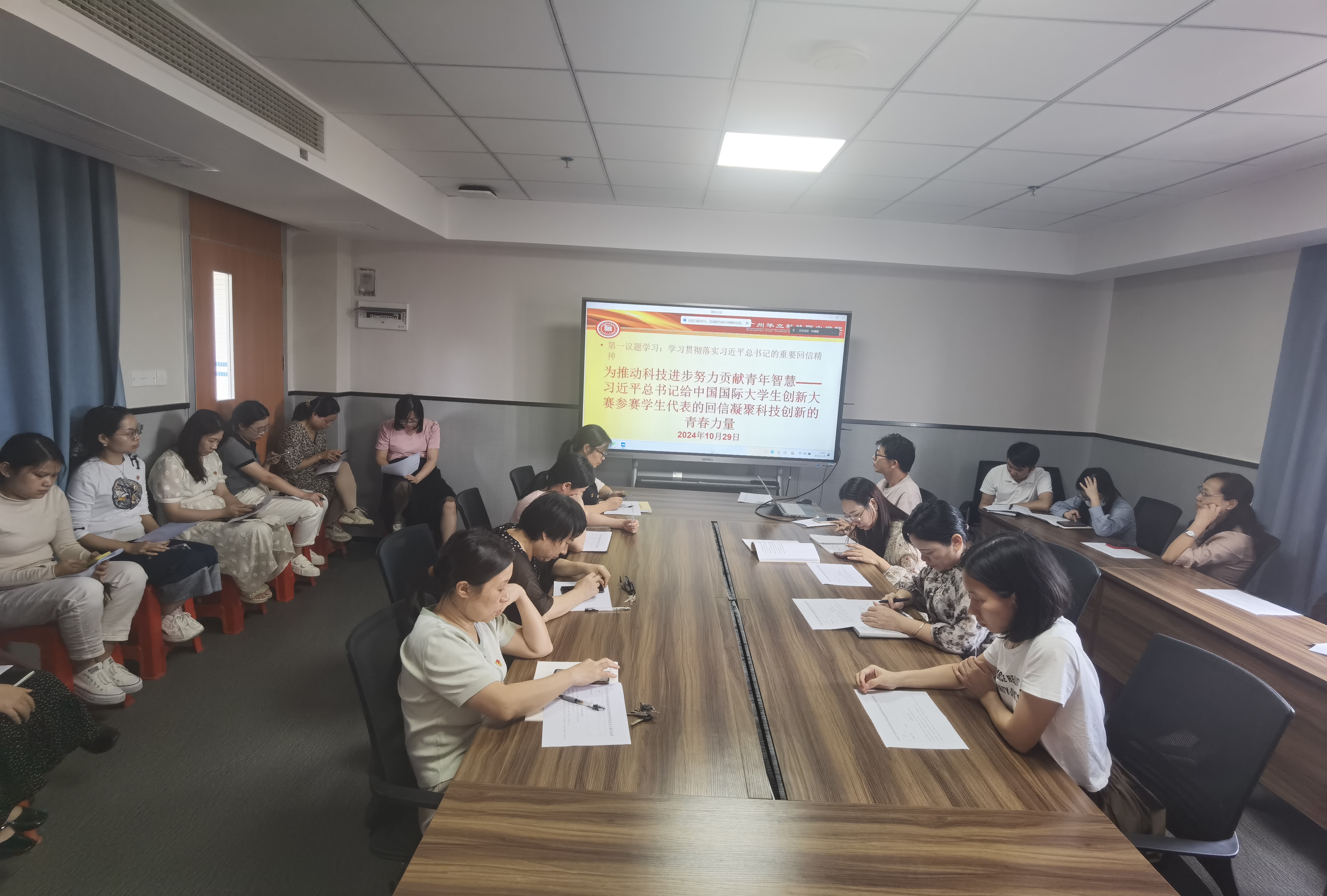 10月29日,經(jīng)濟(jì)管理學(xué)院黨總支全體黨員在學(xué)院黨員活動(dòng)室共同學(xué)習(xí)習(xí)近平總書(shū)記給中國(guó)國(guó)際大學(xué)生創(chuàng)新大賽參賽學(xué)生代表的回信。此次學(xué)習(xí)旨在深入領(lǐng)會(huì)總書(shū)記對(duì)青年創(chuàng)新精神的肯定與期望,進(jìn)一步激發(fā)學(xué)院廣大師生的創(chuàng)新熱情。