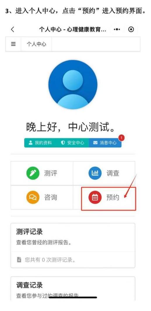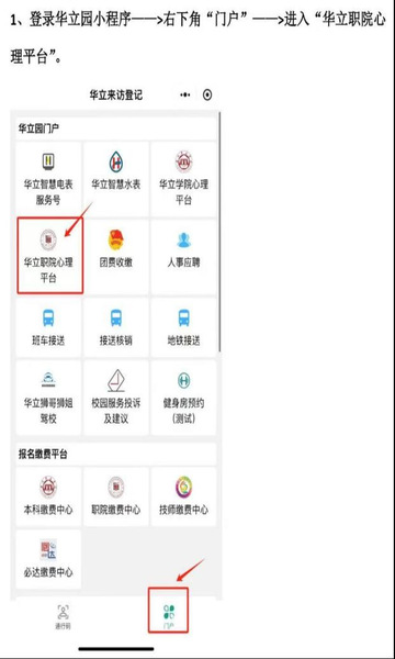 1.小程序預約登錄“華立園”小程序,選擇“華立職院心理平臺”進入預約界面