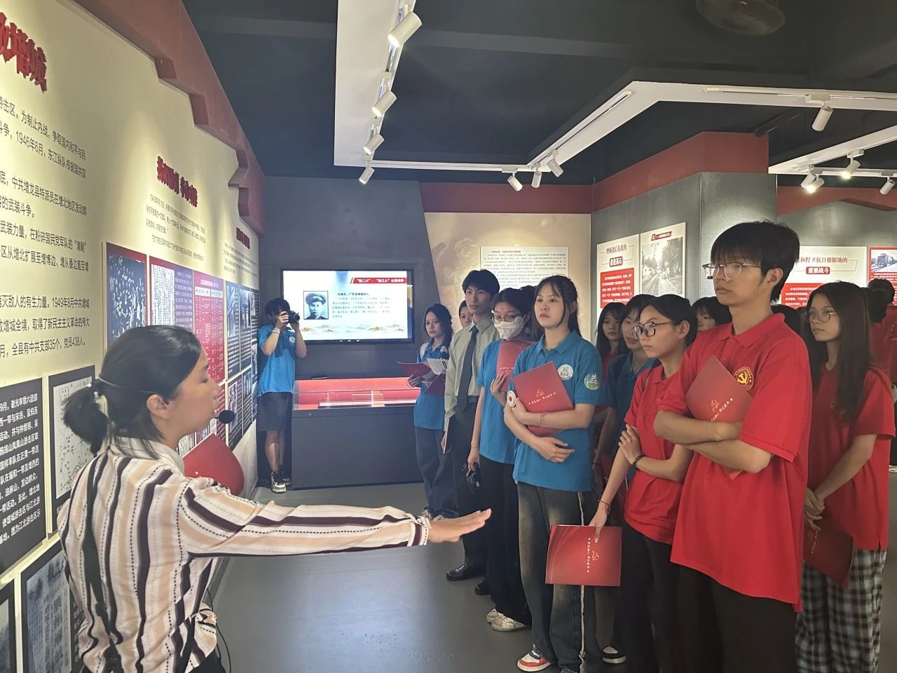 在會議室,通過觀看大埔圍宣傳片、學(xué)習(xí)關(guān)于大埔圍革命精神的兩首紅歌:《東江縱隊之歌》、《鋼鐵連之歌》,更加深刻領(lǐng)會了東江縱隊與大埔圍村民在民族解放中的奮斗精神。