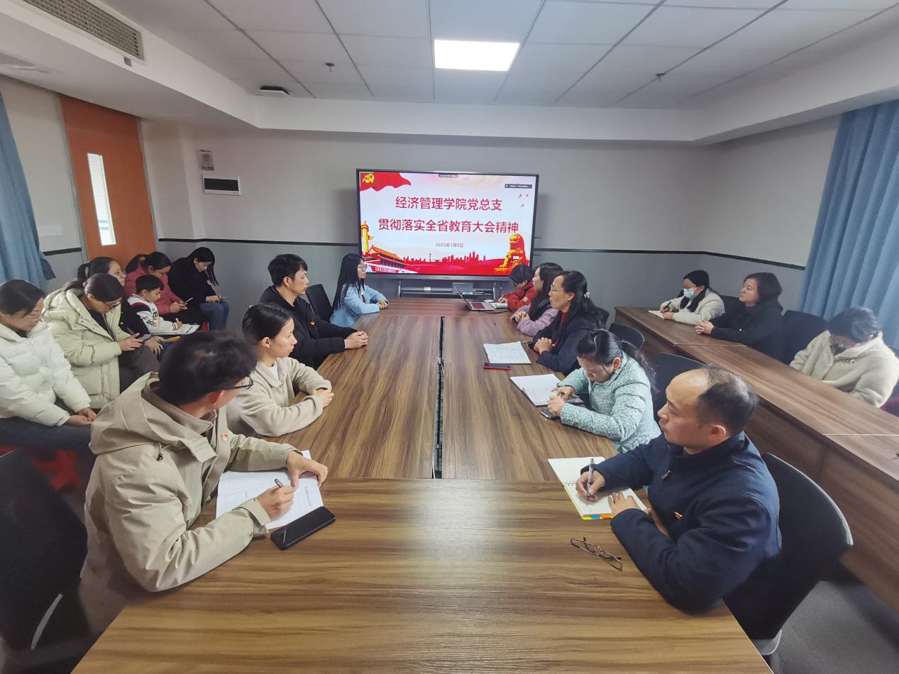 3月6日下午,經(jīng)濟(jì)管理學(xué)院黨總支在西一教學(xué)樓613A會(huì)議室召開(kāi)全體黨員會(huì)議,專題學(xué)習(xí)全省教育大會(huì)精神,研究部署貫徹落實(shí)工作。會(huì)議由學(xué)院黨總支書(shū)記劉惠玲主持,經(jīng)管學(xué)院全體師生黨員參加。