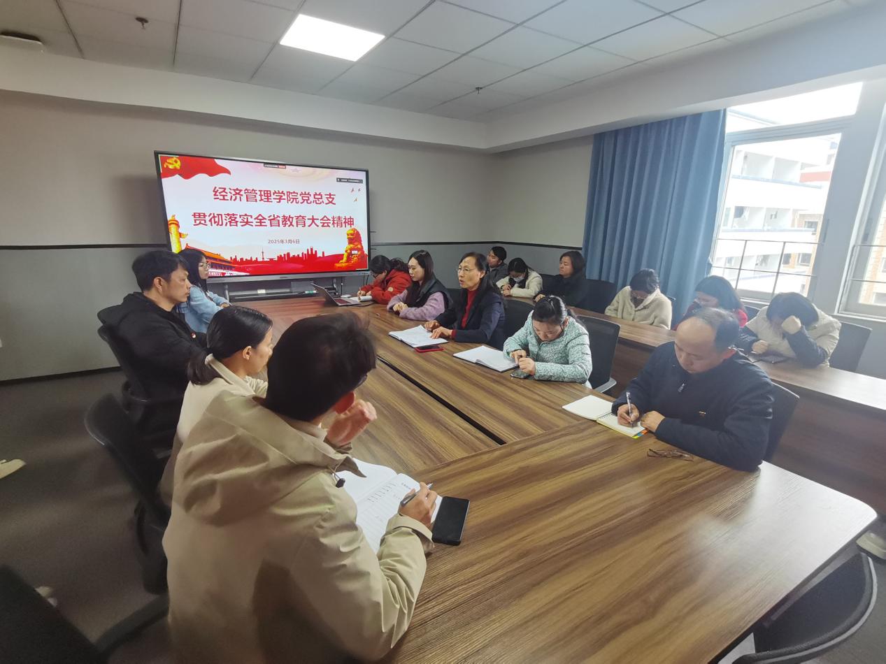 3月6日下午,經(jīng)濟管理學院黨總支在西一教學樓613A會議室召開全體黨員會議,專題學習全省教育大會精神,研究部署貫徹落實工作。會議由學院黨總支書記劉惠玲主持,經(jīng)管學院全體師生黨員參加。