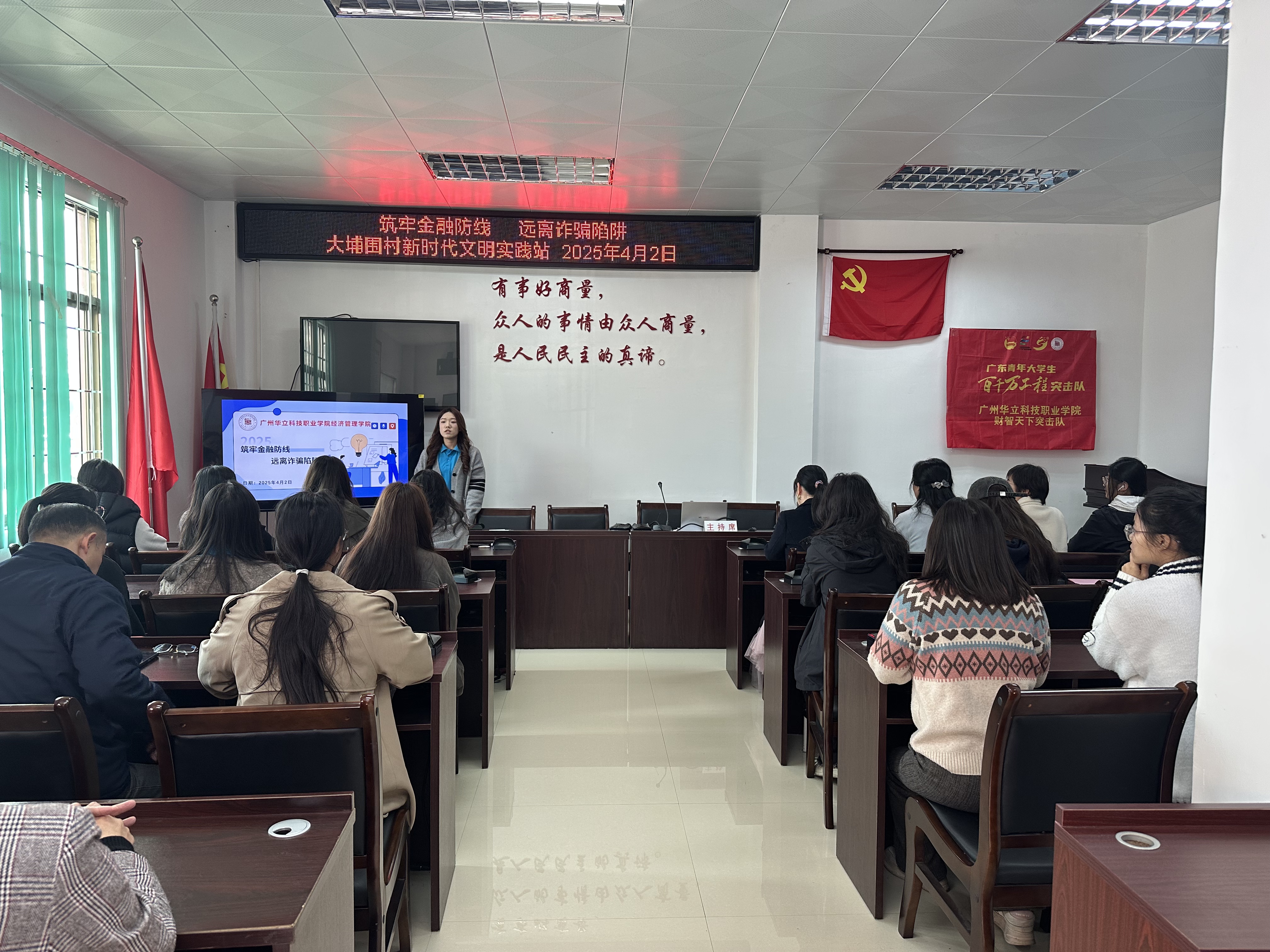 為積極響應(yīng)國家鄉(xiāng)村振興戰(zhàn)略,提升鄉(xiāng)村居民的金融防范意識與學(xué)歷認知水平,2025年4月2日,廣州華立科技職業(yè)學(xué)院經(jīng)濟管理學(xué)院院長兼黨總支書記劉惠玲親自率師生團隊,走進增城區(qū)增江街大埔圍村,開展了一場別開生面的金融防詐騙與學(xué)歷提升講座,為鄉(xiāng)村發(fā)展注入知識力量。