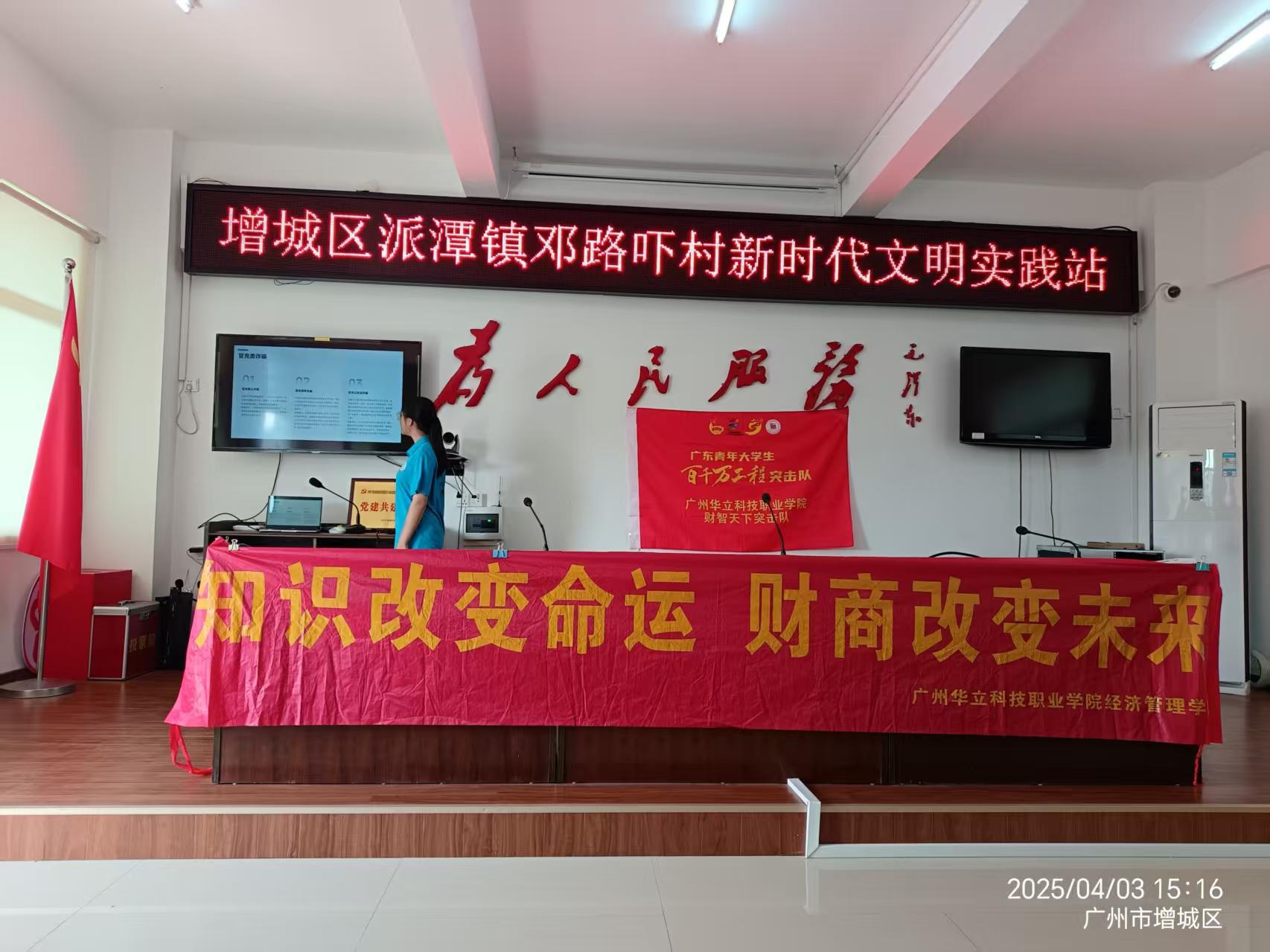 在鄉(xiāng)村振興的奮進(jìn)浪潮中,華立職院經(jīng)濟(jì)管理學(xué)院鄉(xiāng)村振興服務(wù)團(tuán)隊(duì)奔赴潭鎮(zhèn)鄧嚇路村,開(kāi)啟“知識(shí)改變命運(yùn),財(cái)商改變未來(lái)”的知識(shí)下鄉(xiāng)之旅,用系列講座為鄉(xiāng)村發(fā)展注入活力,受到村委會(huì)的大力支持。