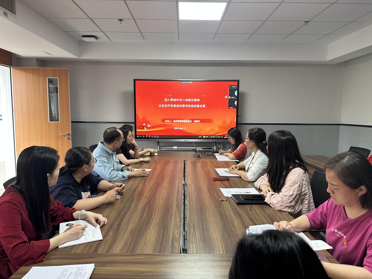 為持續(xù)深化中央八項(xiàng)規(guī)定精神貫徹落實(shí),2025年4月17日,經(jīng)濟(jì)管理學(xué)院黨總支書(shū)記劉惠玲同志在西一613開(kāi)展題為《深入貫徹中央八項(xiàng)規(guī)定精神 以優(yōu)良作風(fēng)推進(jìn)經(jīng)管學(xué)院高質(zhì)量發(fā)展》的學(xué)習(xí)教育專題黨課,學(xué)院全體教師黨員參加此次學(xué)習(xí)。
