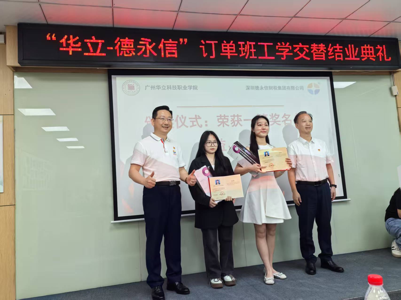2025年4月24日,廣州華立科技職業(yè)學院經濟管理學院大數(shù)據(jù)與會計專業(yè)第一、二批工學交替班結業(yè)典禮暨第三批工學交替班啟動活動在深圳德永信財稅集團有限公司總部隆重舉行。深圳德永信財稅集團有限公司總經理冼朝卓、廣州華立科技職業(yè)學院黨委書記陳良聲、校長助理張劍鋒、經濟管理學院院長劉惠玲、副院長朱向平、劉軍根,相關負責人、指導教師以及全體學員齊聚一堂,共同見證了這一重要時刻。