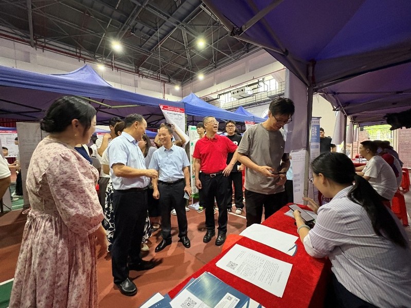 陳良聲書記深入招聘現(xiàn)場,與企業(yè)代表就行業(yè)發(fā)展新趨勢、人才培養(yǎng)新要求進(jìn)行深入交流。劉惠玲院長和朱向平副院長現(xiàn)場指導(dǎo)學(xué)生進(jìn)行職業(yè)規(guī)劃,并圍繞產(chǎn)教融合、校企協(xié)同育人等議題與企業(yè)展開探討。學(xué)生們積極參與互動(dòng)體驗(yàn),與企業(yè)招聘人員深入交流,現(xiàn)場氣氛活躍。