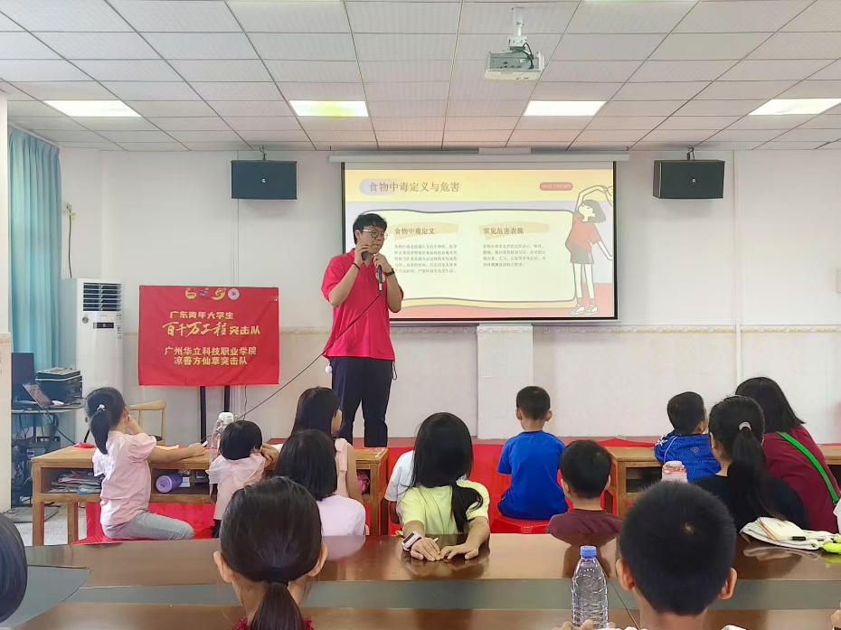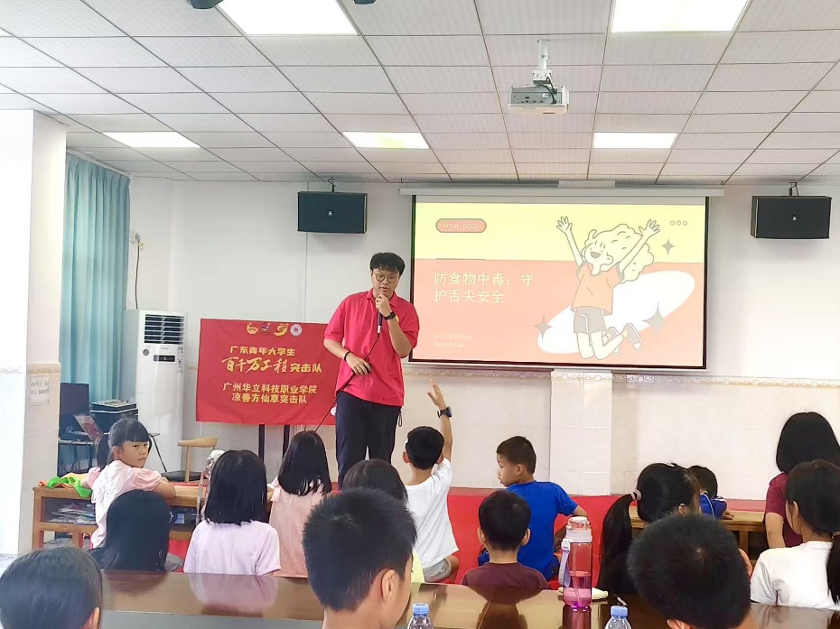 為提升食品安全意識,有效防范食物中毒風(fēng)險,2025年7月15日下午,廣州華立科技職業(yè)學(xué)院經(jīng)濟(jì)管理學(xué)院涼善方仙草突擊隊在廣州市增城區(qū)陸村村為當(dāng)?shù)氐暮⒆娱_展預(yù)防食物中毒主題宣傳教育活動。