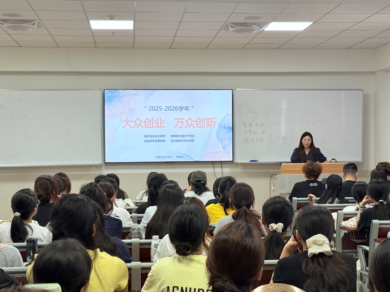 新的學期,新的起點,為幫助25級新生們及時了解學校創(chuàng)新創(chuàng)業(yè)相關資訊,激發(fā)新生創(chuàng)新創(chuàng)業(yè)的熱情,培養(yǎng)新生的創(chuàng)新意識和創(chuàng)新創(chuàng)業(yè)能力,播撒創(chuàng)新創(chuàng)業(yè)的種子,助力新生系好創(chuàng)新創(chuàng)業(yè)的第一??圩樱l(fā)揮以賽促學的示范和引領作用,9月5日,我校經(jīng)管和生活學院在4教多媒體課室舉辦了創(chuàng)新創(chuàng)業(yè)入學教育講座,學院25級全體新生參加活動。