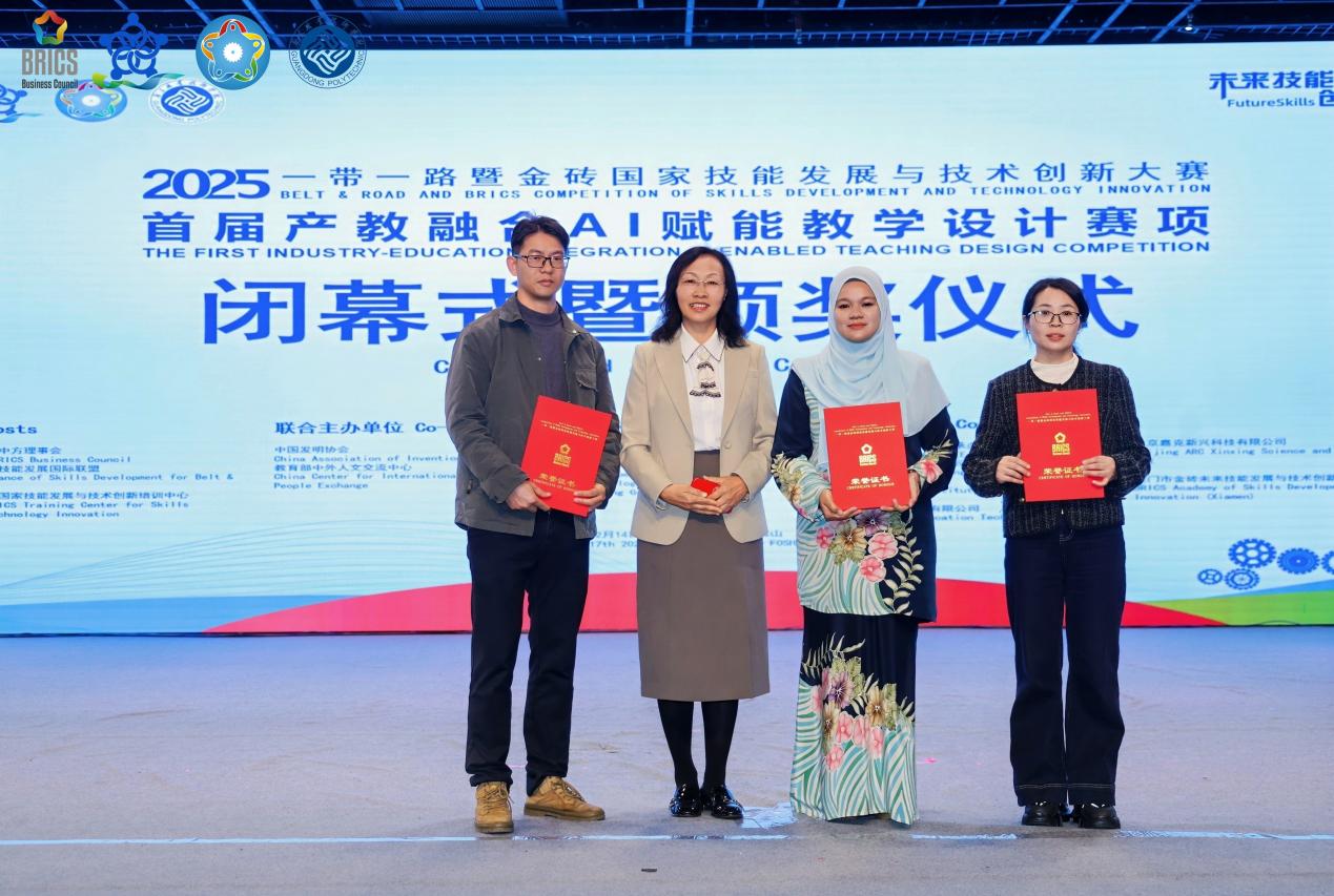 12月14日至17日,2025年“一帶一路”暨金磚國(guó)家技能發(fā)展與技術(shù)創(chuàng)新大賽首屆產(chǎn)教融合AI賦能教學(xué)設(shè)計(jì)賽項(xiàng)決賽在廣東職業(yè)技術(shù)學(xué)院高明校區(qū)圓滿(mǎn)舉行。我校經(jīng)濟(jì)管理學(xué)院4支教師參賽隊(duì)伍憑借扎實(shí)的教學(xué)功底與創(chuàng)新的產(chǎn)教融合AI賦能教學(xué)設(shè)計(jì)理念斬獲二等獎(jiǎng)1項(xiàng)(楊素芹與馬來(lái)西亞美里茂理工學(xué)院ROSFASHIHAH BINTI ROSLAN)、三等獎(jiǎng)2項(xiàng)(梁慧貞與王赟、李萍與何玉冰)及優(yōu)勝獎(jiǎng)1項(xiàng)(何勝華與鄧一平);同時(shí),學(xué)校因組織工作周密、支持保障有力,被大賽組委會(huì)授予“優(yōu)秀組織獎(jiǎng)”,并成為“全球南方AI工坊”首批創(chuàng)始成員單位之一,彰顯了我校在產(chǎn)教融合與國(guó)際教育合作領(lǐng)域的強(qiáng)勁實(shí)力。