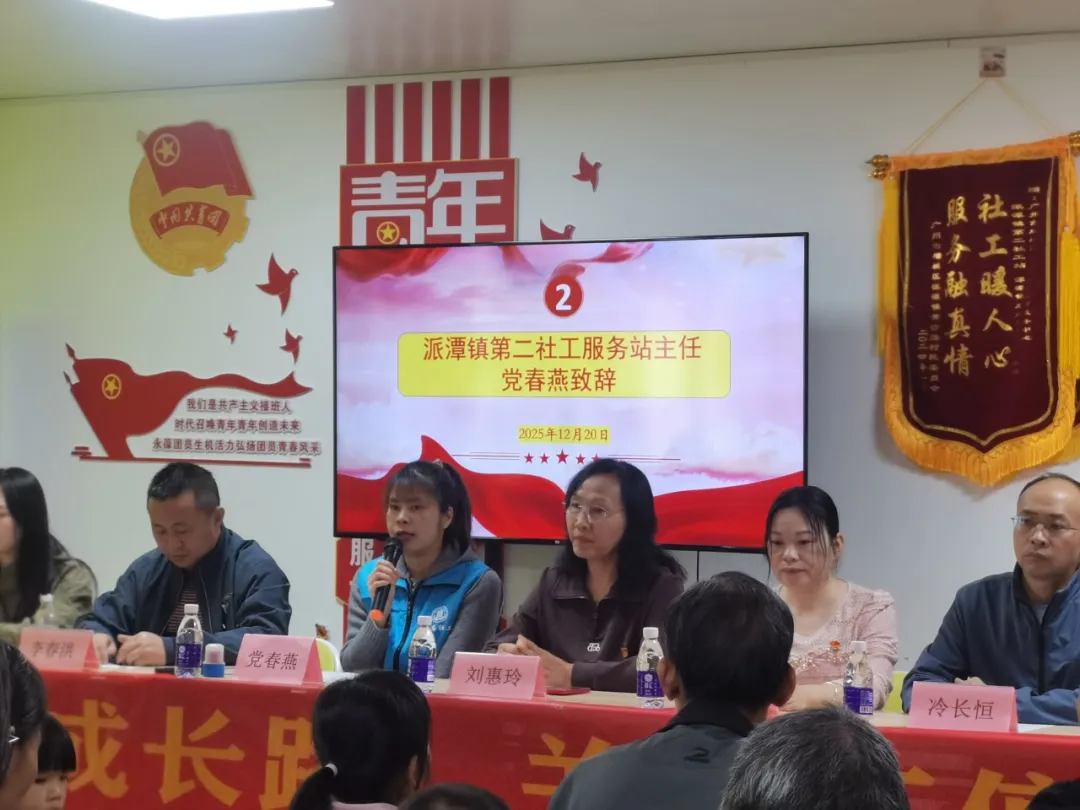 圖1:派潭鎮(zhèn)第二社工服務(wù)站主任黨春燕發(fā)表致辭
