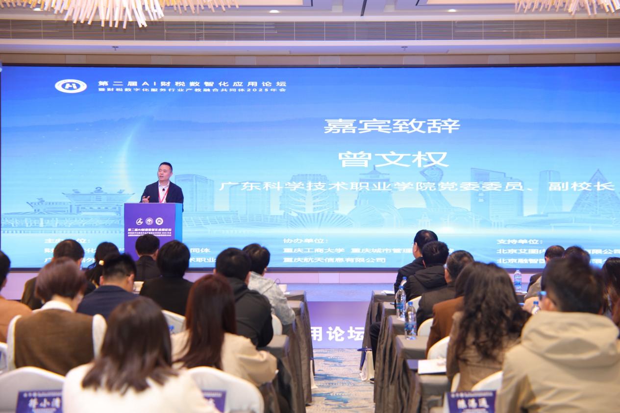 開幕式上,財稅數(shù)字化服務(wù)行業(yè)產(chǎn)教融合共同體理事長、重慶工商大學(xué)黨委常委、副校長張波和廣東科學(xué)技術(shù)職業(yè)學(xué)院黨委委員、副校長曾文權(quán)分別代表主辦方致辭,強(qiáng)調(diào)了人工智能與財稅數(shù)字化融合對職業(yè)教育與行業(yè)發(fā)展的重要意義,并對本次論壇推動產(chǎn)教融合、賦能人才培養(yǎng)寄予厚望。