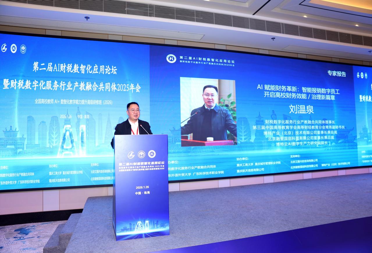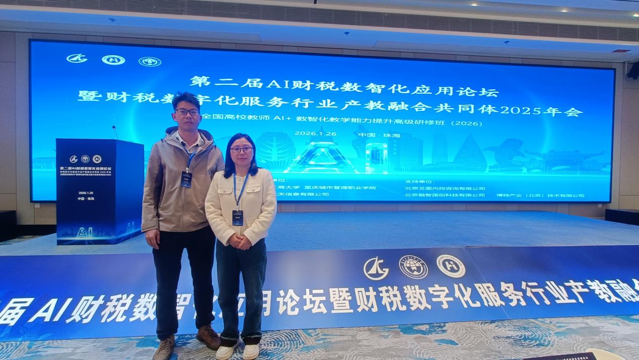2026年1月26日,第二屆AI財稅數(shù)智化應(yīng)用論壇暨財稅數(shù)字化服務(wù)行業(yè)產(chǎn)教融合共同體2025年會在珠海成功舉辦。本次論壇由財稅數(shù)字化服務(wù)行業(yè)產(chǎn)教融合共同體、廣東外語外貿(mào)大學(xué)和廣東科學(xué)技術(shù)職業(yè)學(xué)院聯(lián)合主辦,來自全國高校、企業(yè)和研究機(jī)構(gòu)的專家學(xué)者齊聚一堂,共同探討AI與財稅數(shù)字化融合發(fā)展路徑。我校經(jīng)濟(jì)管理學(xué)院何玉冰、陳湛通兩位教師代表學(xué)校應(yīng)邀參會。