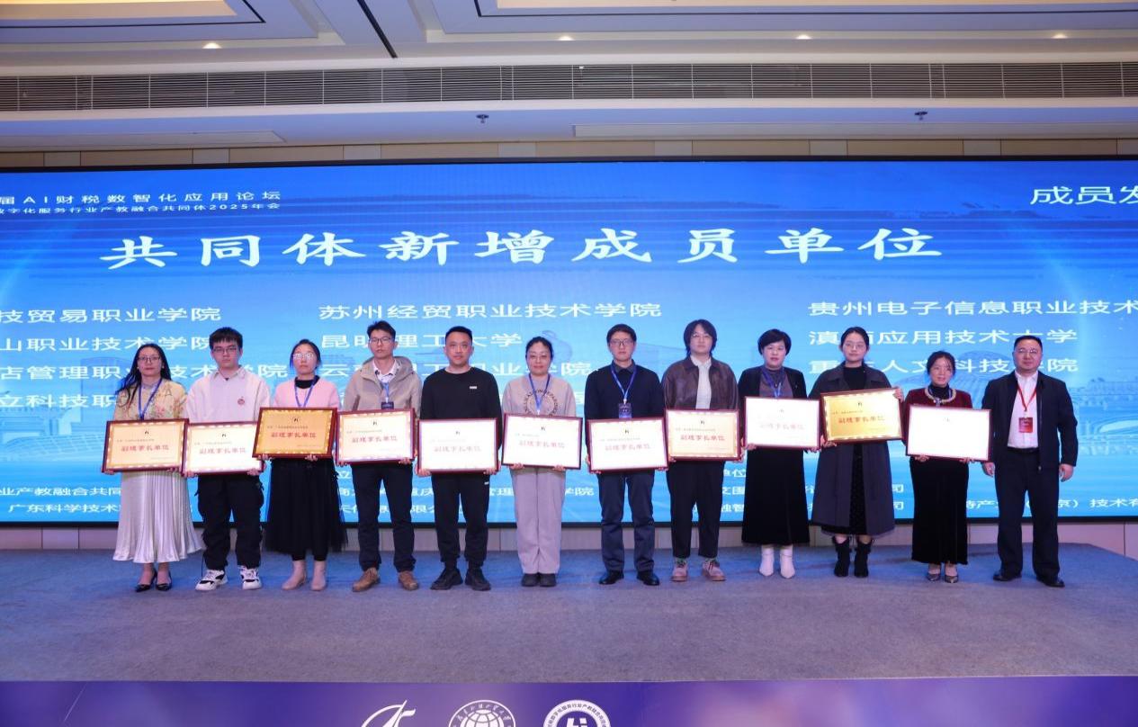 在隨后舉行的共同體年會與頒獎授牌儀式上,我校憑借在AI財稅數(shù)智化人才培養(yǎng)方面的積極探索與顯著成效,被授予“AI財稅數(shù)智化人才培養(yǎng)示范單位”。同時,經(jīng)共同體審議通過,我校正式成為“財稅數(shù)字化服務(wù)行業(yè)產(chǎn)教融合共同體副理事長單位”,兩項榮譽(yù)的獲得,標(biāo)志著我校在財稅數(shù)字化領(lǐng)域的人才培養(yǎng)與產(chǎn)教融合領(lǐng)域的實(shí)踐與影響力獲得行業(yè)高度認(rèn)可。