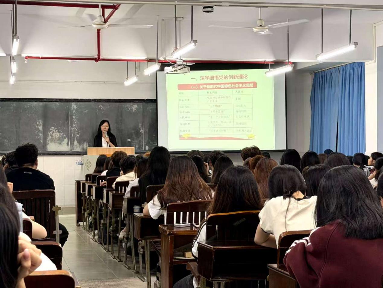 講座伊始,劉惠玲書記首先從理論維度闡釋習近平新時代中國特色社會主義思想精髓要義,指出新時代是中華民族從站起來、富起來到強起來的偉大飛躍時代,中國特色社會主義建設(shè)之“強”體現(xiàn)在全方位躍升,勉勵同學們在學思踐悟中堅定理想信念。解讀“十五五”新發(fā)展征程時,劉書記帶領(lǐng)師生回顧“十四五”成就,介紹“十五五”規(guī)劃五大原則并闡釋核心內(nèi)容,強調(diào)新質(zhì)生產(chǎn)力是推動高質(zhì)量發(fā)展核心動力,鼓勵青年學子擁抱科技革命、練就過硬本領(lǐng)。立足廣東實際,劉書記回顧了習近平總書記對廣東囑托,稱廣東作為改革開放前沿,肩負推進中國式現(xiàn)代化建設(shè)走在前列使命,希望同學們感悟關(guān)懷,將個人發(fā)展融入廣東發(fā)展大局。