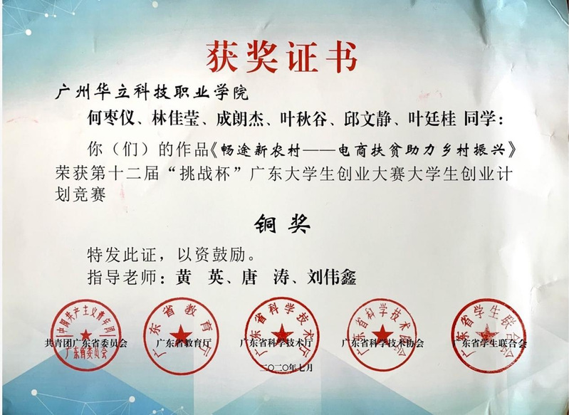 第十二屆“挑戰(zhàn)杯”廣東大學(xué)生創(chuàng)業(yè)大賽大學(xué)生創(chuàng)業(yè)計(jì)劃競(jìng)賽銅獎(jiǎng)