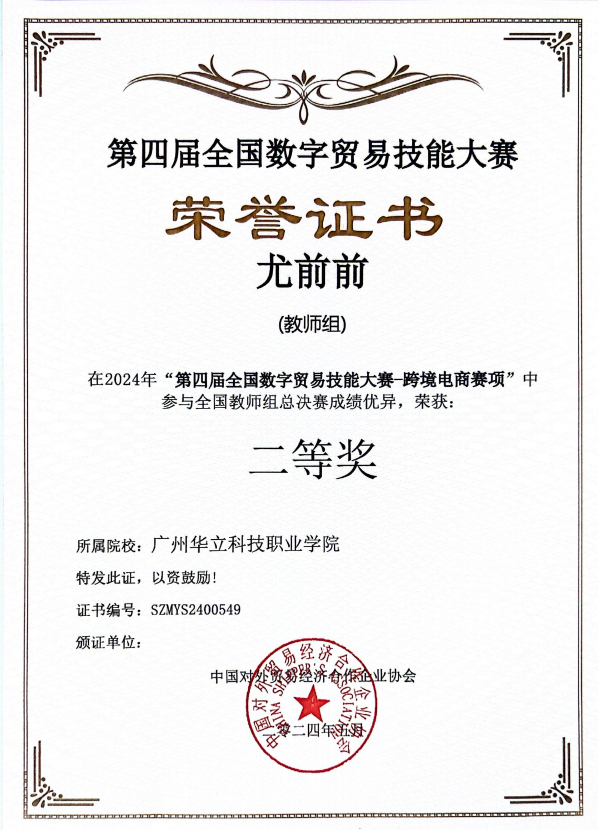 2024年“第四屆全國數(shù)字貿(mào)易技能大賽-跨境電商賽項(xiàng)”全國教師組總決賽二等獎(jiǎng)