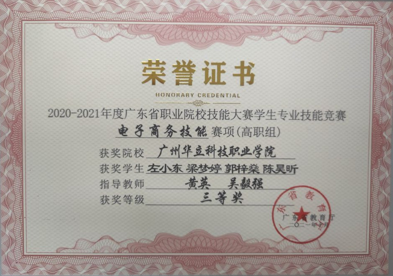 2020-2021學(xué)年廣東省職業(yè)技能大賽電子商務(wù)技能賽項(xiàng)(高職組)三等獎(jiǎng)