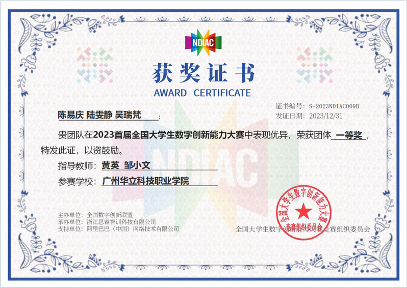 2023首屆全國大學(xué)生數(shù)字創(chuàng)新能力大賽一等獎(jiǎng)