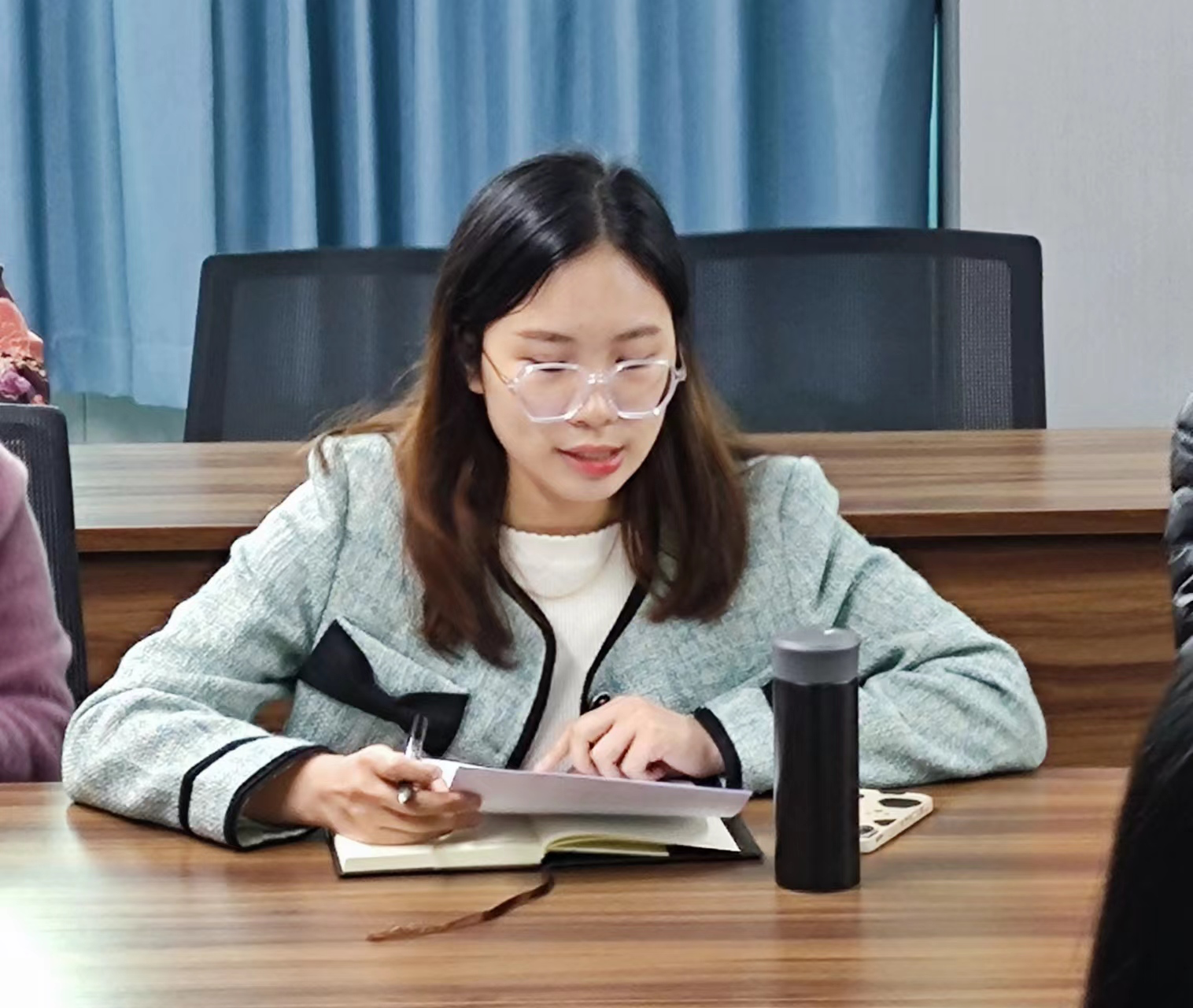 首先,馬克思主義學(xué)院辦公室副主任張燕金老師對過去一年的教務(wù)工作進(jìn)行了總結(jié)。她說,2022年學(xué)院的教學(xué)工作呈現(xiàn)的特點(diǎn)是課時(shí)多、任務(wù)重、教研活、質(zhì)量高、完成好。我們始終堅(jiān)持了以教學(xué)為中心,以規(guī)范為抓手,教學(xué)有序進(jìn)行,總體教學(xué)效果良好。