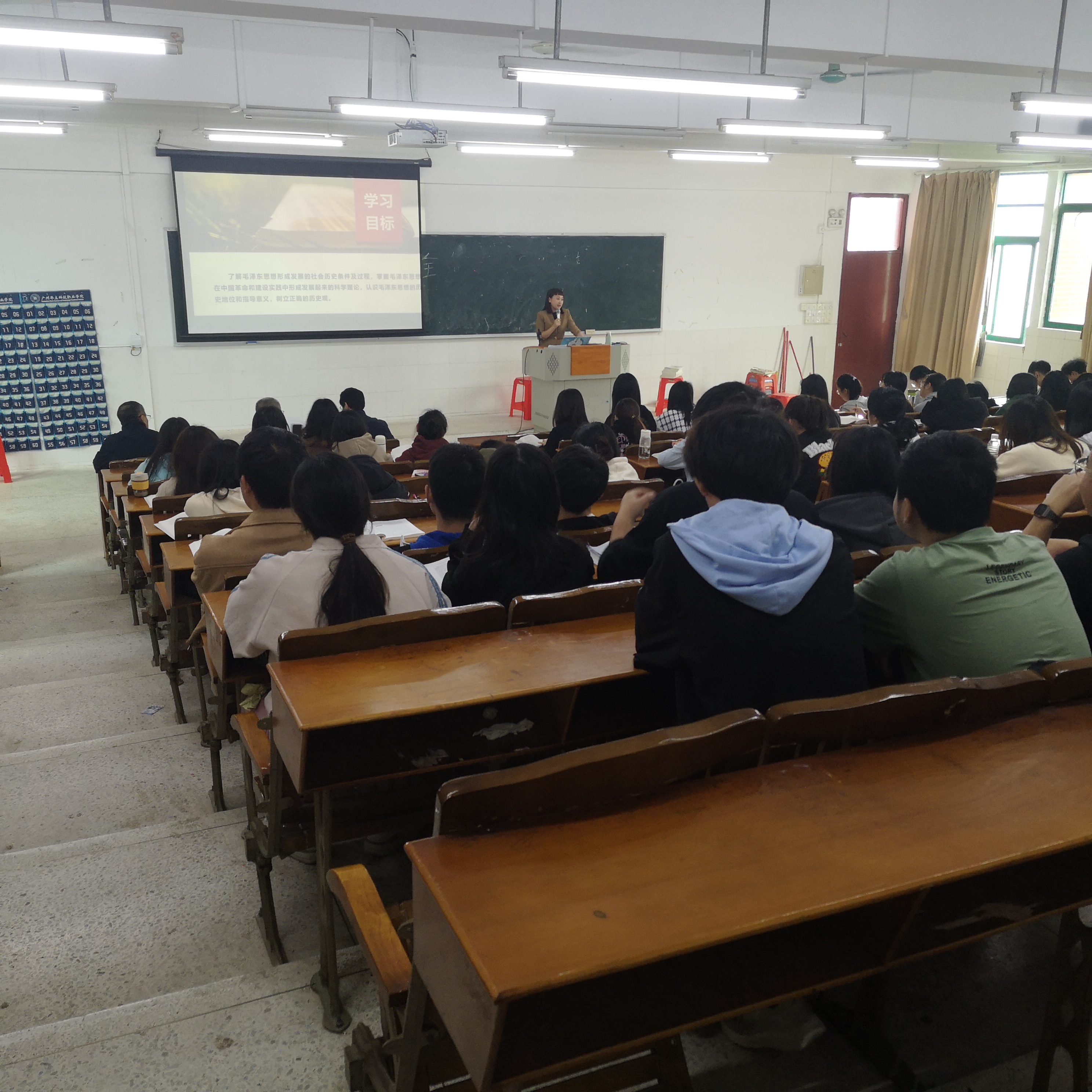 青年教師李敏講授的是《毛澤東思想和中國(guó)特色社會(huì)主義理論體系概論》第一章第一節(jié)“毛澤東思想的形成和發(fā)展”。她將毛澤東思想的形成和發(fā)展和毛澤東的個(gè)人成長(zhǎng)經(jīng)驗(yàn)結(jié)合起來。她結(jié)合自身教學(xué)內(nèi)容和特點(diǎn),深入鉆研教材,廣泛收集資料,精心設(shè)計(jì)教案,認(rèn)真授課,深入淺出的進(jìn)行了講解。同時(shí),在教學(xué)方法上融合了課堂講授、案例教學(xué)、多媒體視頻及課堂提問、答疑、討論等多種形式。學(xué)生也積極參與互動(dòng),呈現(xiàn)出一堂較高質(zhì)量的思政課。