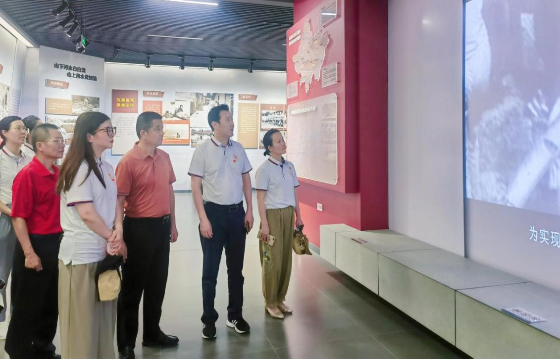 在參觀長崗坡紀念館時,全體黨員通過聽解說、看實物、觀看紀錄片和圖片等多種方式,切身感受長崗坡渡槽的宏大雄偉和建造過程的無比艱辛。