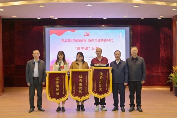 根據(jù)比賽規(guī)則與評(píng)分標(biāo)準(zhǔn),評(píng)委們?cè)u(píng)選出一等獎(jiǎng)1名、二等獎(jiǎng)3名、三等獎(jiǎng)6名、優(yōu)秀獎(jiǎng)2名、優(yōu)秀組織獎(jiǎng)3個(gè)(獲獎(jiǎng)名單附后)。計(jì)算機(jī)學(xué)院黨總支的張栢桐選手獲得一等獎(jiǎng),將代表學(xué)校參加省級(jí)“微黨課”大賽。陳良聲書記、陳顯強(qiáng)副校長(zhǎng)等領(lǐng)導(dǎo)為獲獎(jiǎng)基層黨組織與個(gè)人頒獎(jiǎng)。