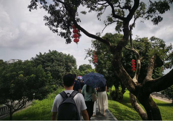 瓜嶺村始建于明朝成化年間,村落距今有500多年歷史,這里保留著明清時期嶺南水鄉(xiāng)的歷史風貌,是廣東省著名僑鄉(xiāng),也是廣州唯一的水上清代建筑民居群。在講解員帶領(lǐng)下,我院一行人參觀了游客中心、碉樓、黃公祠、門樓、研學活動中心等,對瓜嶺村的前世今生有了全面而深刻的認識。瓜嶺村原名瓜洲村,取瓜瓞綿長之意,歷史上曾有多位村民到海外謀生。咸豐六年前后,上百村民前往美洲淘金,20世紀又有村民赴新西蘭等地,現(xiàn)有3000多鄉(xiāng)親僑居海外,村民的奮斗精神和故土情懷為瓜嶺村注入了獨特的文化氣息。