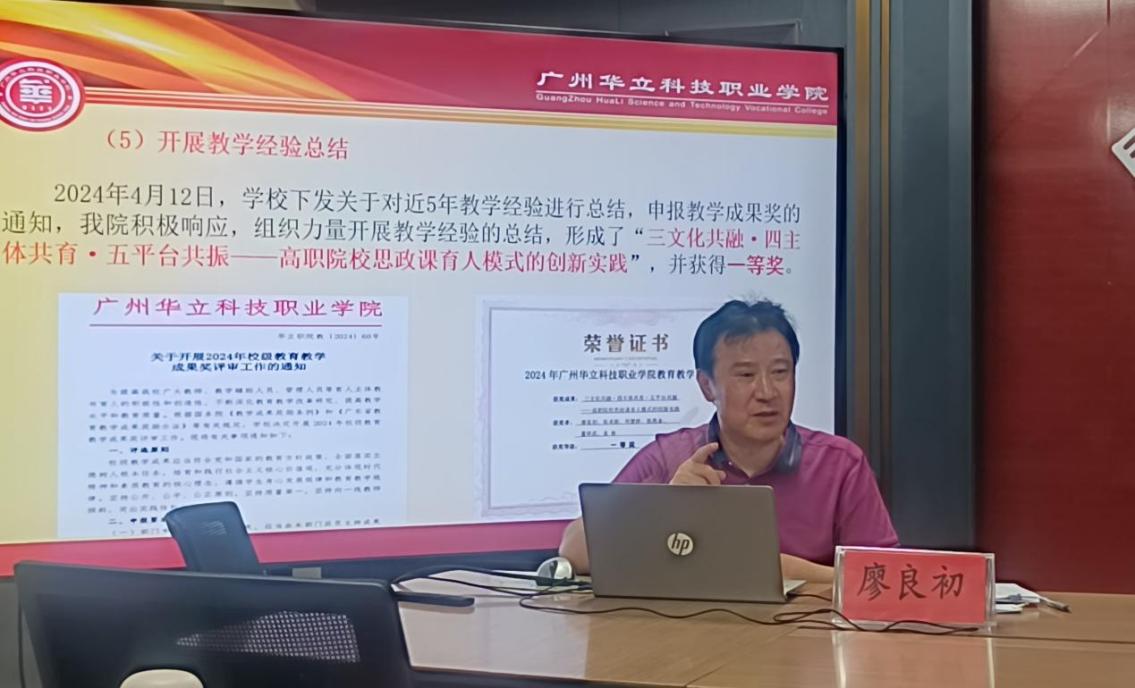 在談到下學(xué)期的工作思路時(shí),廖院長提出新學(xué)期要繼續(xù)堅(jiān)持以習(xí)近平新時(shí)代中國特色社會(huì)主義思想為指導(dǎo),以立德樹人為根本任務(wù),以《普通高等學(xué)校馬克思主義學(xué)院建設(shè)標(biāo)準(zhǔn)》(2023年版)為標(biāo)準(zhǔn),結(jié)合馬克思主義學(xué)院工作實(shí)際,圍繞學(xué)校創(chuàng)新強(qiáng)校的要求,團(tuán)結(jié)全體思政課教師,努力實(shí)現(xiàn)馬克思主義學(xué)院高質(zhì)量發(fā)展。廖良初院長將工作重點(diǎn)概括為“四個(gè)突出”。一是突出教學(xué)中心地位。發(fā)揮教研室主體作用,深化“三教改革”,組建品牌教學(xué)團(tuán)隊(duì),參與各類教學(xué)竟賽活動(dòng),爭取創(chuàng)造優(yōu)秀成績。二是突出創(chuàng)新強(qiáng)校工程。組建科研團(tuán)隊(duì),申報(bào)各級(jí)各類課題,推動(dòng)廣州市甘泉文化研究會(huì)的成立工作。三是突出規(guī)范管理工作,特別是規(guī)范日常教學(xué)管理,以及加強(qiáng)學(xué)院內(nèi)部制度建設(shè),確保各項(xiàng)工作有章可循、有據(jù)可依。四是突出意識(shí)形態(tài)工作。落實(shí)“在馬言馬”總方針的同時(shí),加強(qiáng)思想政治教育,嚴(yán)把意識(shí)形態(tài)關(guān)。他表示,新學(xué)期將繼續(xù)組織馬克思主義學(xué)院思政課教師參加各種教學(xué)科研培訓(xùn),積極與兄弟院校開展學(xué)習(xí)交流活動(dòng),不斷提高思政課教師的教學(xué)水平和工作能力。