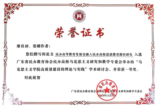 研討會共收到來自全省50多所高校的250多篇投稿,由評委會評選出優(yōu)秀論文一等獎22篇,二等獎及其他獎100余篇。我院廖良初教授、張璐老師合作的《民辦高等教育發(fā)展史融入高校思想政治教育路徑研究》一文榮獲一等獎。