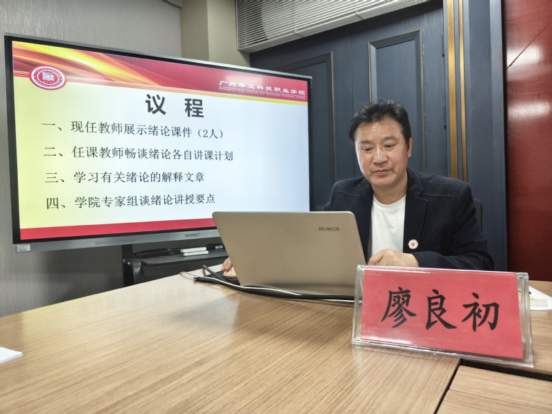 備課現場,由王繼東老師首先展示“緒論”PPT課件并講解授課思路。在聽取“緒論”課件及重要內容解析后,廖良初院長從三個方面提出建設性意見:一是要注重“緒論”部分交待3個問題:即講清《思想道德與法治》課的課程性質、課程體系、課程內容;講清當代大學生為什么要開設《思想道德與法治》課,這門課對大學生有什么作用和意義;講清當代大學生怎樣學好這門課程、老師有什么要求。二是要注重素材選取的黏合性,即采用“案例鏈+問題鏈”雙鏈驅動模式,可通過“華立新青年”公眾號提供的我校師生中的鮮活素材提升教學黏性,備課要做好三備,即備教材、備學生、備社會;三是要注重把握好教學內容的邏輯結構,教案、課件既要緊扣新版教材的理論框架,又要有機融合時政素材,實現教材體系向教學體系的創(chuàng)造性轉化。