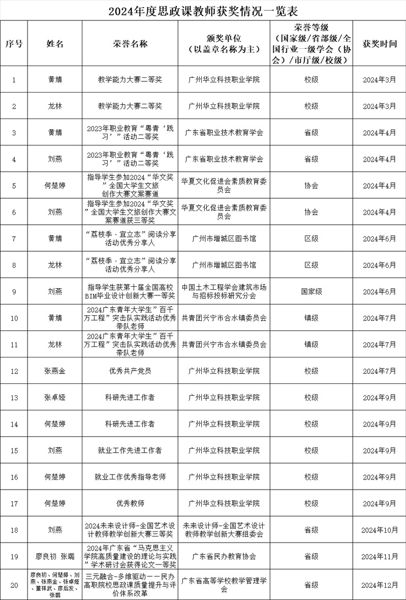 2024年度思政課教師獲獎情況一覽表