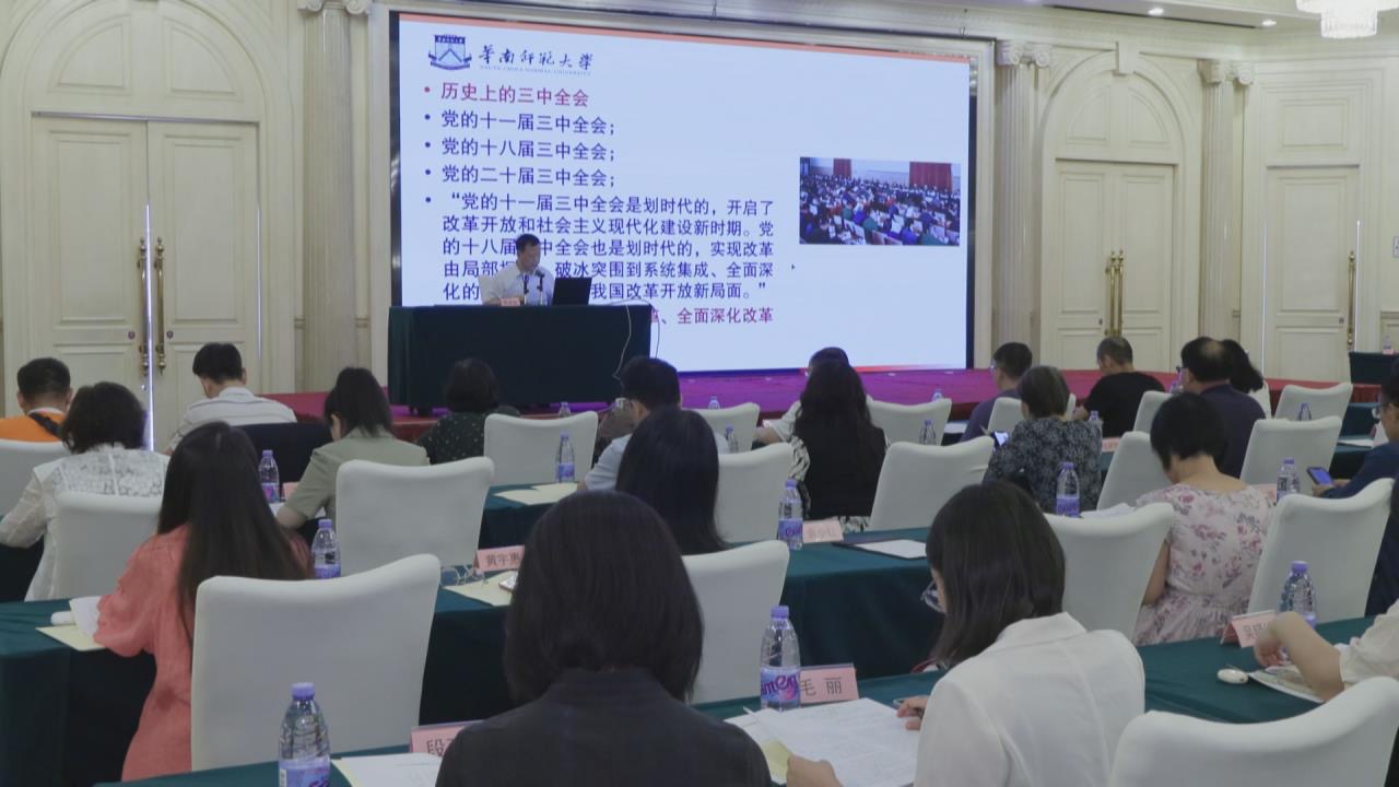 研修班上,華南師范大學(xué)學(xué)術(shù)委員會(huì)副主任、馬克思主義學(xué)院教授、博士生導(dǎo)師,教育部“長(zhǎng)江學(xué)者”特聘教授陳金龍以《進(jìn)一步全面深化改革以推進(jìn)中國(guó)式現(xiàn)代化》為題授課;廣州大學(xué)黨委書(shū)記、校長(zhǎng)、教授、博士生導(dǎo)師魏明海以《加快建構(gòu)中國(guó)哲學(xué)社會(huì)科學(xué)自主知識(shí)體系》為題授課;廣東外語(yǔ)外貿(mào)大學(xué)社會(huì)與公共管理學(xué)院教授吳月以《黨建引領(lǐng)社會(huì)組織高質(zhì)量發(fā)展:政策指引與典型案例分析》為題授課;市社科聯(lián)黨組成員、專職副主席譚曉紅以《建設(shè)具有強(qiáng)大凝聚力和引領(lǐng)力的社會(huì)主義意識(shí)形態(tài)》為題授課。
