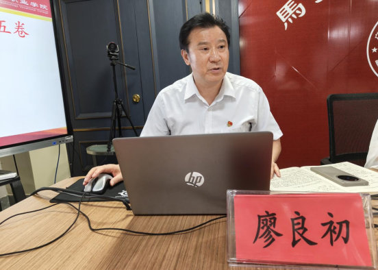 為深入學(xué)習(xí)貫徹習(xí)近平新時代中國特色社會主義思想,推動黨的創(chuàng)新理論入腦入心、及時融入教學(xué),10月30日下午,馬克思主義學(xué)院組織全體教師在G1-314室舉行《習(xí)近平談治國理政》第五卷專題研學(xué),院長廖良初教授主持,習(xí)近平新時代中國特色社會主義思想教研室主任何楚婷副教授主講。