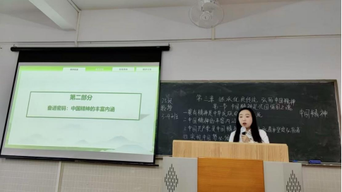 趙老師從“崇尚精神是中華民族的優(yōu)秀傳統(tǒng)”切入,精準(zhǔn)講解了中國精神的科學(xué)概念和深刻內(nèi)涵,生動解讀了偉大創(chuàng)造精神、偉大奮斗精神、偉大團(tuán)結(jié)精神與偉大夢想精神的豐富蘊(yùn)涵,通過巧妙嫁接歷史典故、植入當(dāng)代實(shí)踐案例,引導(dǎo)學(xué)生穿越時(shí)空隧道,感知中華民族精神譜系的博大厚重,理解傳承中華民族精神的歷史自覺。授課有的放矢、言之有物、情理交融,賦予原理以深刻論證,還給予說教以現(xiàn)實(shí)關(guān)照和生活溫度,讓“中國精神”真正走進(jìn)學(xué)生心靈。