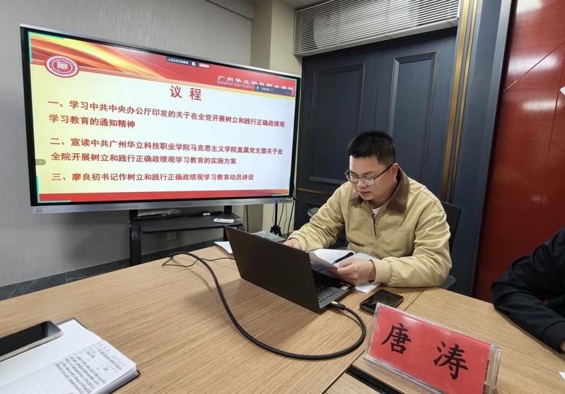 隨后,支部組織委員唐濤同志宣讀《中共廣州華立科技職業(yè)學(xué)院馬克思主義學(xué)院支部委員會關(guān)于在全院開展樹立和踐行正確政績觀學(xué)習(xí)教育的實施方案》。方案圍繞總體要求、工作專班、工作重點、工作要求等方面作出全面部署,明確了本次“學(xué)習(xí)教育”的覆蓋范圍、時間安排,劃定了深化學(xué)習(xí)研討、查擺問題、整改落實、建章立制、開門教育五大工作重點,并公布了“學(xué)習(xí)教育”工作安排表。