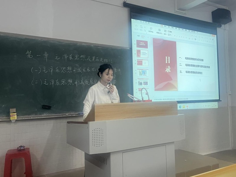 本次活動(dòng)分為課堂聽課與集中評課兩個(gè)環(huán)節(jié)。聽課環(huán)節(jié)中,黃海燕老師以毛澤東思想及其歷史地位為教學(xué)主題,系統(tǒng)講授毛澤東思想的形成與發(fā)展、主要內(nèi)容、活的靈魂等核心知識。授課過程中,黃老師精神飽滿、邏輯嚴(yán)謹(jǐn),熟練運(yùn)用信息化教學(xué)手段,課堂設(shè)計(jì)層次清晰、互動(dòng)充分,有效調(diào)動(dòng)學(xué)生學(xué)習(xí)積極性,展現(xiàn)出扎實(shí)的教學(xué)能力與良好的課堂風(fēng)貌。
