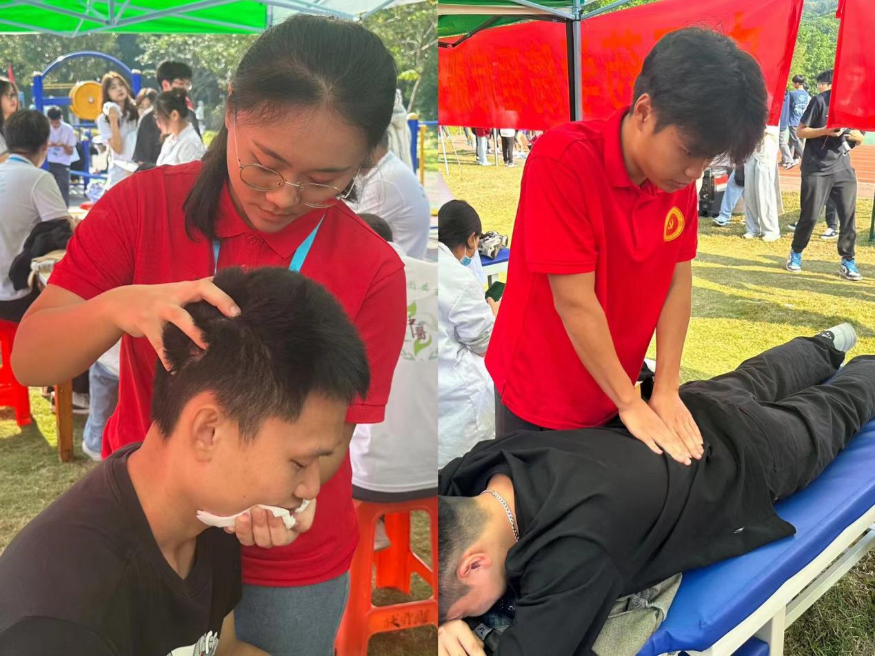 11月23日至11月24日,我校第十二屆師生運動會經(jīng)歷了兩天的精彩角逐順利地落下了帷幕。本次校運會不僅有運動員們馳騁賽場的英姿,還有許多幕后工作人員辛勤付出的身影。我院黨建小組和中醫(yī)藥協(xié)會的同學(xué)們駐扎在田徑場,通過聯(lián)合開展中醫(yī)理療志愿活動為參賽的師生們提供按摩推拿服務(wù),幫助他們放松肌肉、緩解疼痛,以別樣的方式助力校運會!
