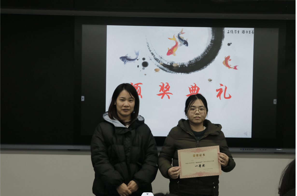 最后,教科研主任郭燕婷老師及評(píng)委王清玉老師、董穎敏老師上臺(tái)總結(jié)發(fā)言。對(duì)獲獎(jiǎng)的同學(xué)表示祝賀,肯定了所有參賽選手的精神風(fēng)貌,呼吁大家“學(xué)經(jīng)典,用經(jīng)典”,做到“傳承精華,守正創(chuàng)新”,通過汲取中醫(yī)藥文化精髓,為中醫(yī)藥事業(yè)發(fā)展做出更大的貢獻(xiàn)。