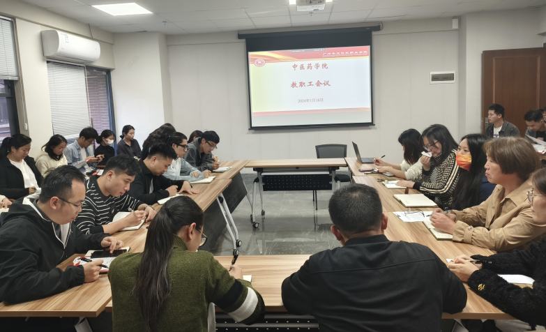 隨著2024年寒假的來臨,中醫(yī)藥學院為進一步凝聚發(fā)展共識,明確本學期期末工作、假期安全和下學期工作計劃,于2024年1月16日召開中醫(yī)藥學院全體教職工大會。學院全體教職工參加會議,會議由學院辦公室副主任李遠興主持。會上,各條線負責人針對所管轄的工作范圍進行了通報,學院副院長張志勇及黨支部書記曾祥彪針對本學期中醫(yī)藥學院的分管工作做了總結發(fā)言,并要求大家認真落實好期末工作安排,傳達寒假的工作部署和對于下學期提出具體工作安排。