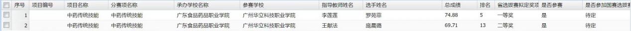 圖1 中藥傳統(tǒng)技能參賽選手及成績